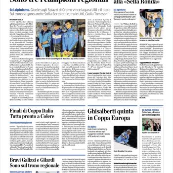 A SESTRIERE I CAMPIONATI ITALIANI ASSOLUTI: PODIO PER ILARIA GHISALBERTI – I RISULTATI DELLE GARE FIS DI QUESTI GIORNI